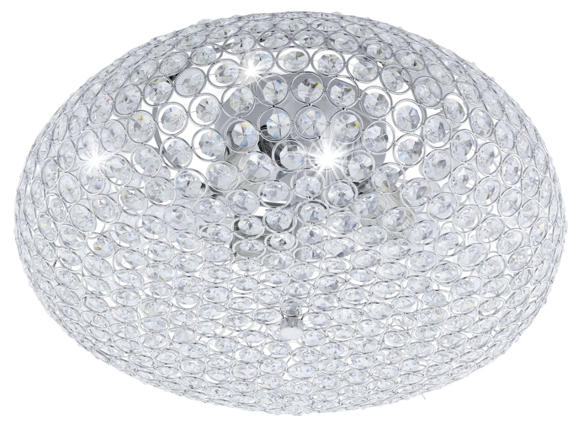 Stropní svítidlo CLEMENTE má kovové tělo v chromové barvě a oválné stínidlo vyrobené z řad čirých krystalů. Špičkové křišťálové prvky vytvářejí jiskřivý, vysoce kvalitní vzhled, když je zapnuté světlo. Stropní svítidlo elegantně zapadne do moderních interiérů a vytvoří tu správnou náladu v každém prostoru, ať už v obývacím pokoji, ložnici nebo chodbě. Výrobek má objímky žárovek E27 a vyžaduje 3 žárovky E27.
