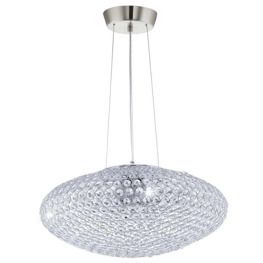 Závěsné svítidlo CLEMENTE má kovové tělo v chromové barvě a zavěšené oválné stínidlo vyrobené z řad čirých krystalů. Špičkové křišťálové prvky vytvářejí jiskřivý, vysoce kvalitní vzhled, když je světlo zapnuté. Závěsné svítidlo elegantně zapadne do moderních interiérů a vytvoří tu správnou náladu v každém prostoru, ať už v obývacím pokoji nebo nad stolem v jídelně. Výrobek má objímky žárovek E27 a vyžaduje 3 žárovky E27.