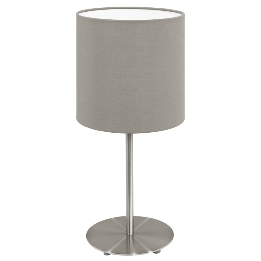 Stolní lampa PASTERI má základnu z matného niklu s kulatým látkovým stínidlem v barvě taupe. Výrobek má jednoduchý design, který bez problémů zapadne do téměř jakéhokoli interiéru. Lze jej snadno zapnout a vypnout pomocí in-line spínače. Ať už na nočním stolku nebo na příborníku v obývacím pokoji, lampa poskytuje útulné osvětlení vašeho obytného prostoru. Žárovka není součástí dodávky. Výrobek má objímku žárovky E14 a vyžaduje žárovku E14.