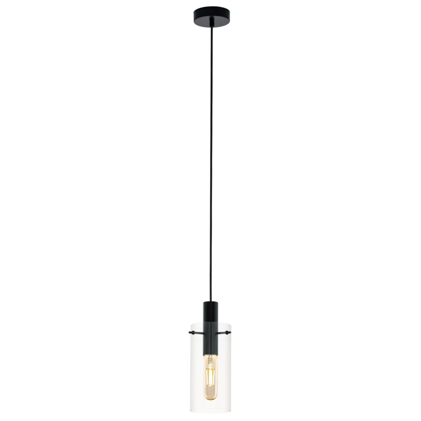 Závěsné svítidlo MONTEFINO se vyznačuje zavěšeným čirým skleněným válcem v kombinaci s kulatým černým kovovým držákem. Stínidlo z čirého skla umožňuje přímý pohled na žárovku uvnitř. Závěsné svítidlo je dokonalým završením moderních stylů interiérového designu a vytváří stylové osvětlení v obývacím pokoji nebo jídelně. Vyobrazená žárovka s vláknem není součástí balení. Výrobek má objímku žárovky E27 a vyžaduje žárovku E27.