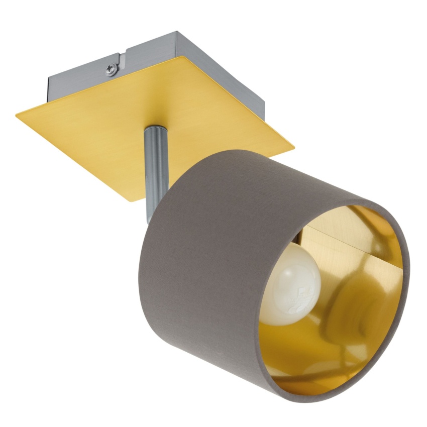 Nástěnné nebo stropní bodové svítidlo VALBIANO má nastavitelné stínidlo z látky v barvě cappuccino se zlatým vnitřním povrchem. Design má nástěnný držák v matném niklu a mosazi. Nástěnné bodové svítidlo lze skvěle integrovat do moderních interiérů a použít jako stropní svítidlo. Výkyvná hlavice umožňuje nastavit světlo pro zvýraznění jednotlivých částí místnosti, ať už v obývacím pokoji, ložnici, chodbě nebo jídelně. Vyobrazená žárovka není součástí balení. Výrobek má objímku žárovky E14 a vyžaduje žárovku E14.