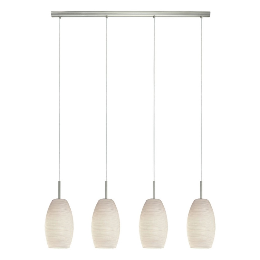 Závěsné svítidlo BATISTA 3 se vyznačuje podlouhlým stropním držákem z matného niklu se čtyřmi kulatými stínidly z bílého skla zdobenými technikou stírání skla. Díky svému jednoduchému designu se závěsné svítidlo hladce hodí do různých stylů interiérového designu a poskytuje útulné osvětlení v obývacím pokoji nebo nad dlouhým stolem v jídelně. Žárovky nejsou součástí dodávky. Výrobek má objímky žárovek E27 a vyžaduje žárovky E27.