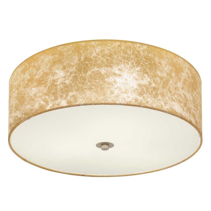 Stropní svítidlo VISERBELLA má kulaté látkové stínidlo s povrchovou úpravou ve stylu zlatých listů a kovovými detaily v barvě champagne. Stropní svítidlo má bílý difuzor, který zajišťuje rovnoměrné osvětlení bez oslnění. Stropní svítidlo s průměrem 47 cm se skvěle začlení do moderních interiérů a poskytuje útulné osvětlení jakéhokoli prostoru, ať už v obývacím pokoji, ložnici, chodbě nebo jídelně. Žárovky nejsou součástí dodávky. Výrobek má objímky žárovek E27 a vyžaduje žárovky E27.