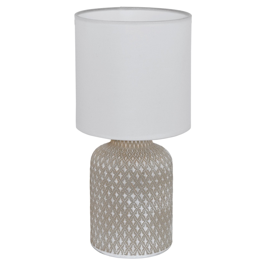 Stolní lampa BELLARIVA má zakřivenou šedou keramickou základnu v oblíbeném boho designu v kombinaci s kulatým bílým látkovým stínidlem. Útulná stolní lampa hladce zapadne do moderních interiérů a osloví každého, kdo miluje detaily, vzory nebo textury. Výrobek lze také snadno zapnout a vypnout pomocí in-line spínače. Ať už na nočním stolku nebo v obývacím pokoji, jídelně nebo chodbě, poskytuje útulné osvětlení jakéhokoli prostoru. Výrobek má objímku žárovky E27 a vyžaduje 1 žárovku E27.