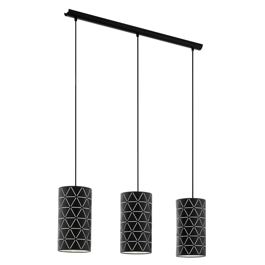 Závěsné svítidlo RAMON se vyznačuje třemi válcovými kovovými stínidly v černé barvě s geometrickým výřezem a vnitřním povrchem potaženým bílou barvou. Výřezy vytvářejí fascinující hru světla a stínu, jakmile se rozsvítí světlo. Závěsné svítidlo hladce zapadá do moderních a skandinávských stylů interiérového designu a poskytuje výrazné osvětlení jakéhokoli prostoru, ať už v obývacím pokoji nebo nad dlouhým stolem v jídelně. Žárovky nejsou součástí dodávky. Výrobek má objímky žárovek E27 a vyžaduje žárovky E27.