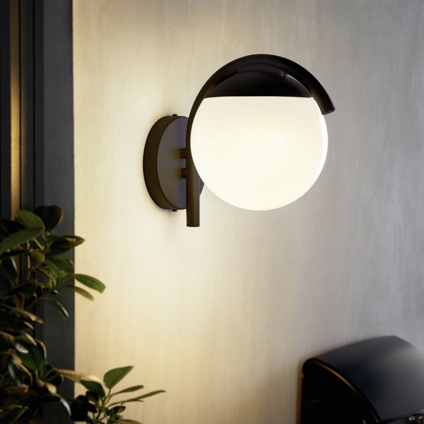 Venkovní nástěnné svítidlo PRATA VECCHIA má černé obloukové kovové tělo a bílou plastovou světelnou kouli. Nástěnné svítidlo je vhodné pro venkovní použití díky krytí IP44 proti stříkající vodě. Díky minimalistickému designu je produkt ideálním světlem pro venkovní stěny domu a hodí se do každého moderního venkovního prostoru. Žárovka není součástí dodávky. Výrobek má objímku žárovky E27 a vyžaduje žárovku E27.