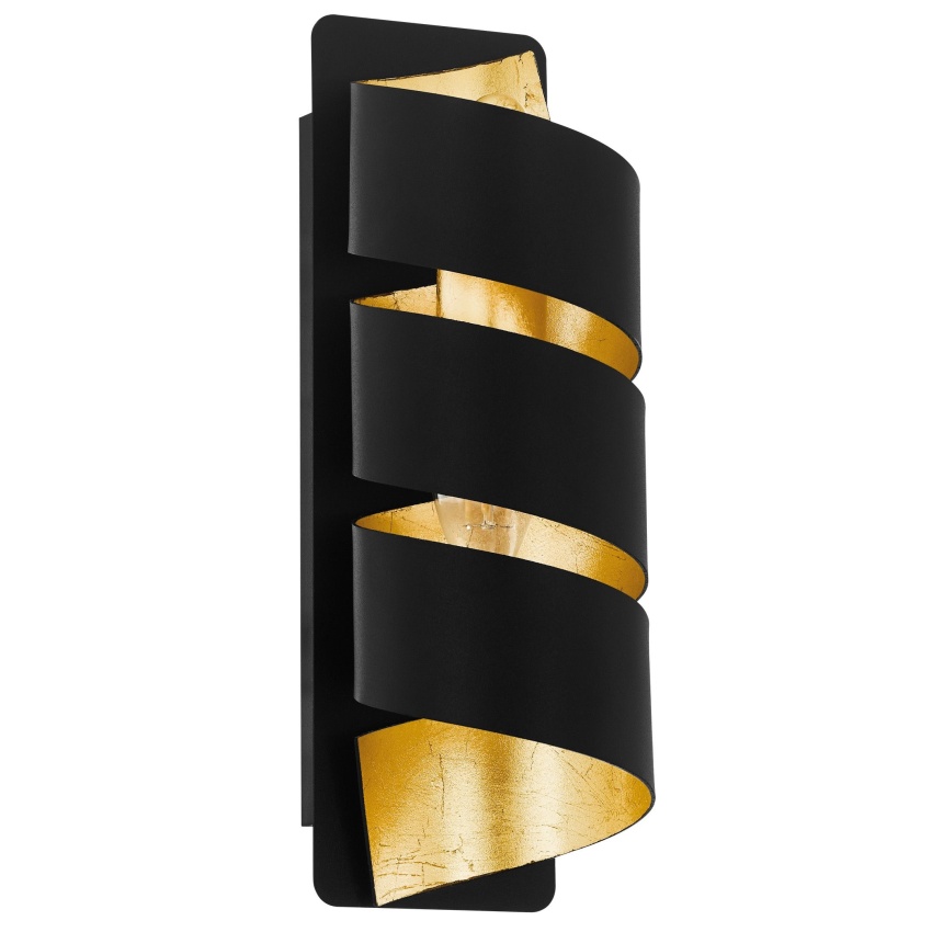 Nástěnné svítidlo ELIZONDO má černé spirálovité kovové tělo se zlaceným vnitřním povrchem. Spirálový design vytváří fascinující hru světla a stínu, když je světlo zapnuté. Nástěnné svítidlo doplňuje moderní styly interiérového designu a vytváří atraktivní osvětlení na stěně, ať už v obývacím pokoji, ložnici, chodbě nebo jídelně. Vyobrazená žárovka s vláknem není součástí balení. Výrobek má objímku žárovky E14 a vyžaduje 1 žárovku E14.