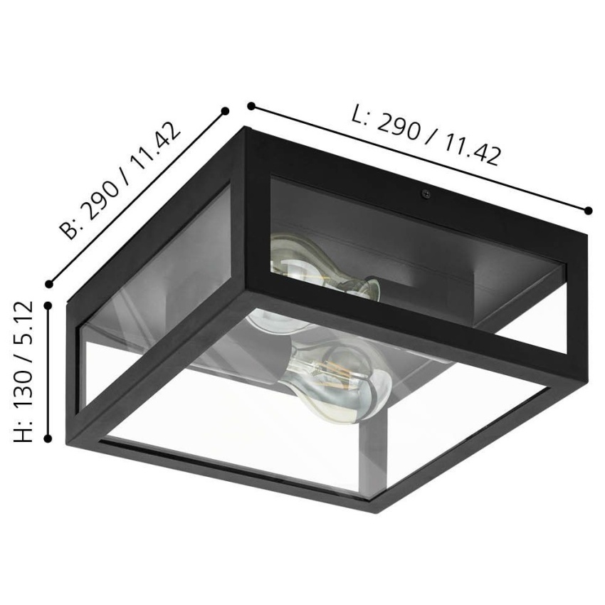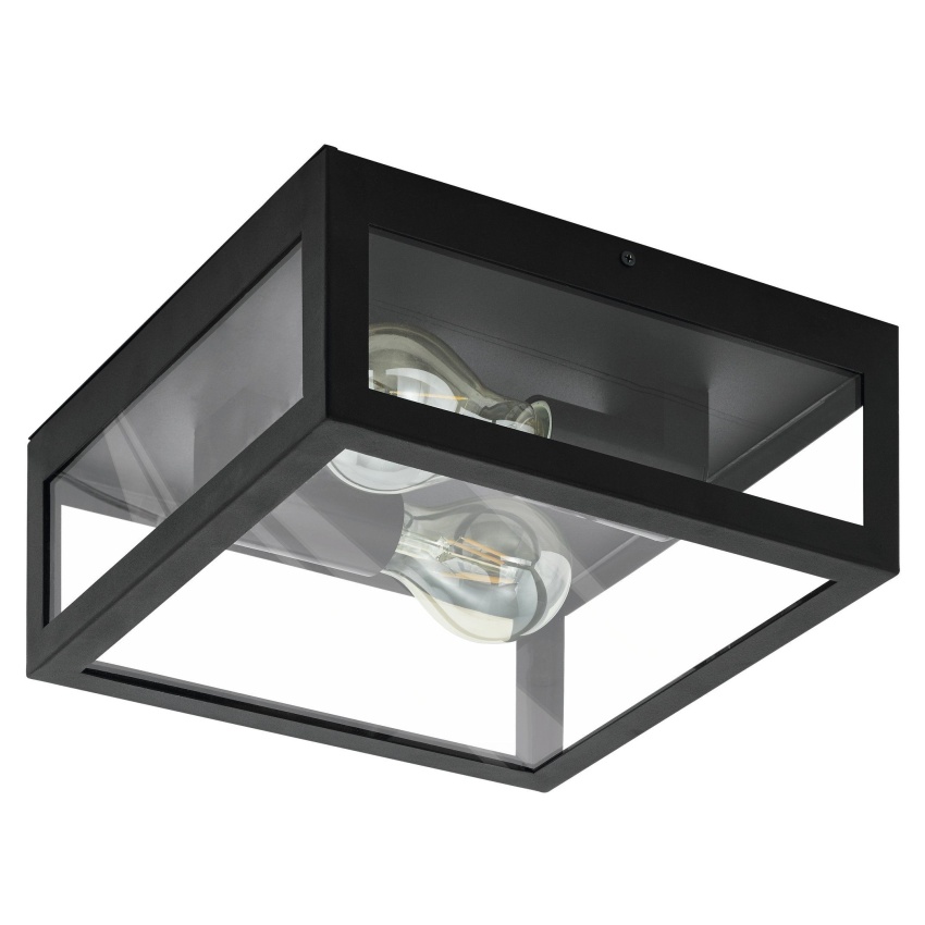 Nástěnné svítidlo AMEZOLA má černý kovový rám a čiré skleněné panely s viditelným designem žárovky. Nástěnné svítidlo je dokonalým završením moderních interiérů a s krytím IP44 proti stříkající vodě nabízí výrazné řešení osvětlení koupelny. Vyobrazené žárovky nejsou součástí dodávky. Výrobek má objímky žárovek E27 a vyžaduje 2 žárovky E27.