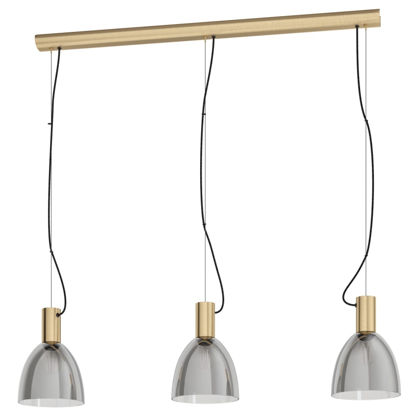 Závěsné svítidlo LEBALIO se vyznačuje třemi kulatými stínidly vyrobenými z kouřového černého lakovaného skla a objímkami z broušené mosazi. Stropní držák podtrhuje jednoduchý, elegantní vzhled svítidla a umožňuje mu bezproblémově zapadnout do moderních a minimalistických interiérů. Závěsné svítidlo poskytuje stylové osvětlení každého interiéru, ať už v obývacím pokoji nebo nad jídelním stolem. Vyobrazené žárovky s vláknem nejsou součástí dodávky. Výrobek má objímky žárovek E27 a vyžaduje žárovky E27.