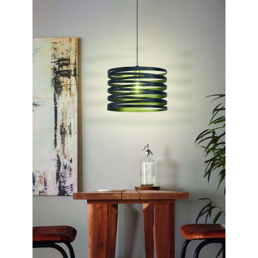 Závěsné svítidlo CREMELLA má kulaté stínidlo vyrobené z černého kovu. Spirálové kovové pásy vytvářejí fascinující hru světla a stínu, jakmile se rozsvítí světlo. Závěsné svítidlo hladce splyne s trendy, jako je vintage a industrial. Výrobek nabízí moderní design do každého prostoru, ať už je to kuchyně, obývací pokoj nebo nad stůl v jídelně. Výrobek vyžaduje 1 žárovku E27, která není součástí balení.