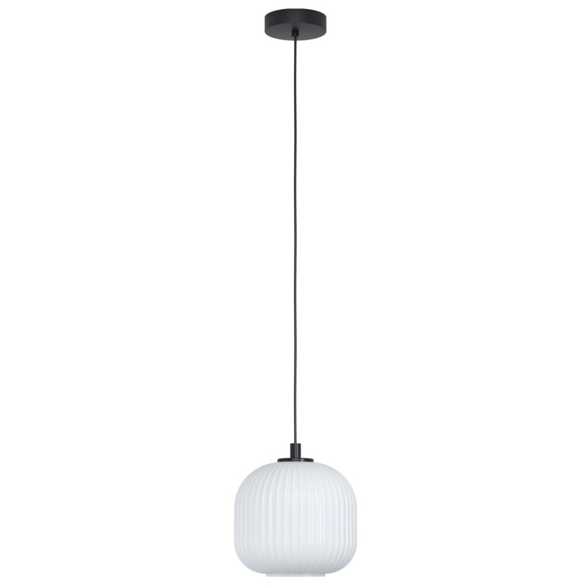 Závěsné svítidlo MANTUNALLE má kulaté stínidlo vyrobené z bílého žebrovaného skla a černý kovový držák. Světlo se hladce hodí do moderních a skandinávských interiérů a poskytuje stylové osvětlení jakéhokoli prostoru, ať už v kuchyni, obývacím pokoji nebo nad jídelním stolem. Žárovka není součástí dodávky. Výrobek má objímku žárovky E27 a vyžaduje žárovku E27.