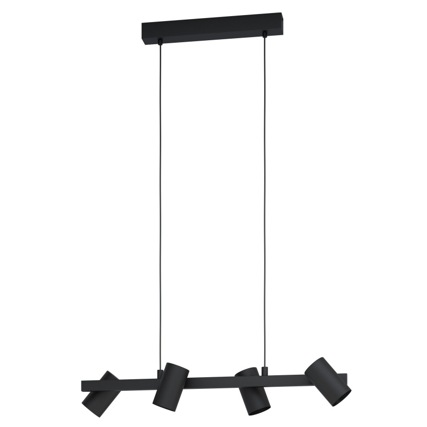 Závěsné LED svítidlo GATUELA 1 je vyrobeno z černého kovu a má čtyři nastavitelné světelné hlavy umístěné po obou stranách. Závěsné svítidlo se svým atraktivním monochromatickým designem doplňuje moderní interiéry a poskytuje výrazné osvětlení pro každý interiér, ať už v obývacím pokoji nebo nad dlouhým stolem v jídelně. Výrobek vyžaduje 4 x E14 žárovky, které nejsou součástí balení.