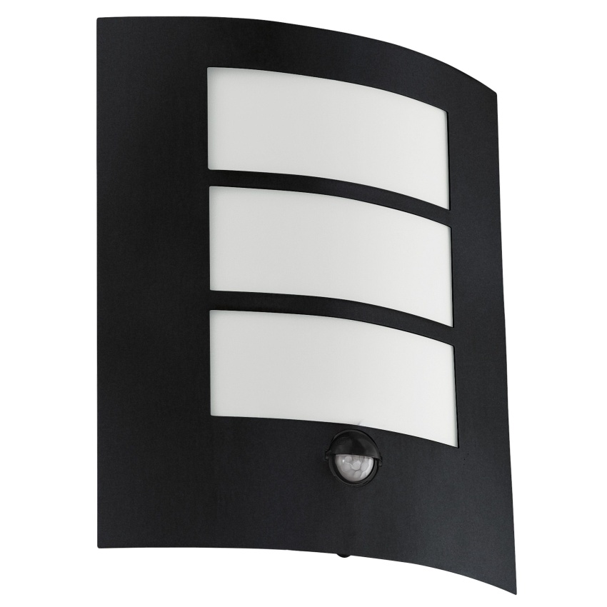Venkovní nástěnné svítidlo CITY má zakřivené tělo vyrobené z černého pozinkovaného kovu a tři bílé saténové plastové difuzory světla. Nástěnné svítidlo obsahuje pohybové čidlo, které se automaticky zapíná, osvětluje místa se špatnou viditelností a odrazuje nežádoucí návštěvníky. Integrovaný soumrakový senzor měří úroveň okolního světla, aby se zajistilo, že se světlo zapne pouze v případě potřeby. S krytím IP44 proti stříkající vodě je venkovní světlo vhodné pro venkovní použití. Ať už u vchodu nebo na terase, klasický design zapadne do široké škály venkovních prostor a poskytuje bezpečné, spolehlivé a neoslňující osvětlení. Výrobek vyžaduje 1 žárovku E27, která není součástí balení.
