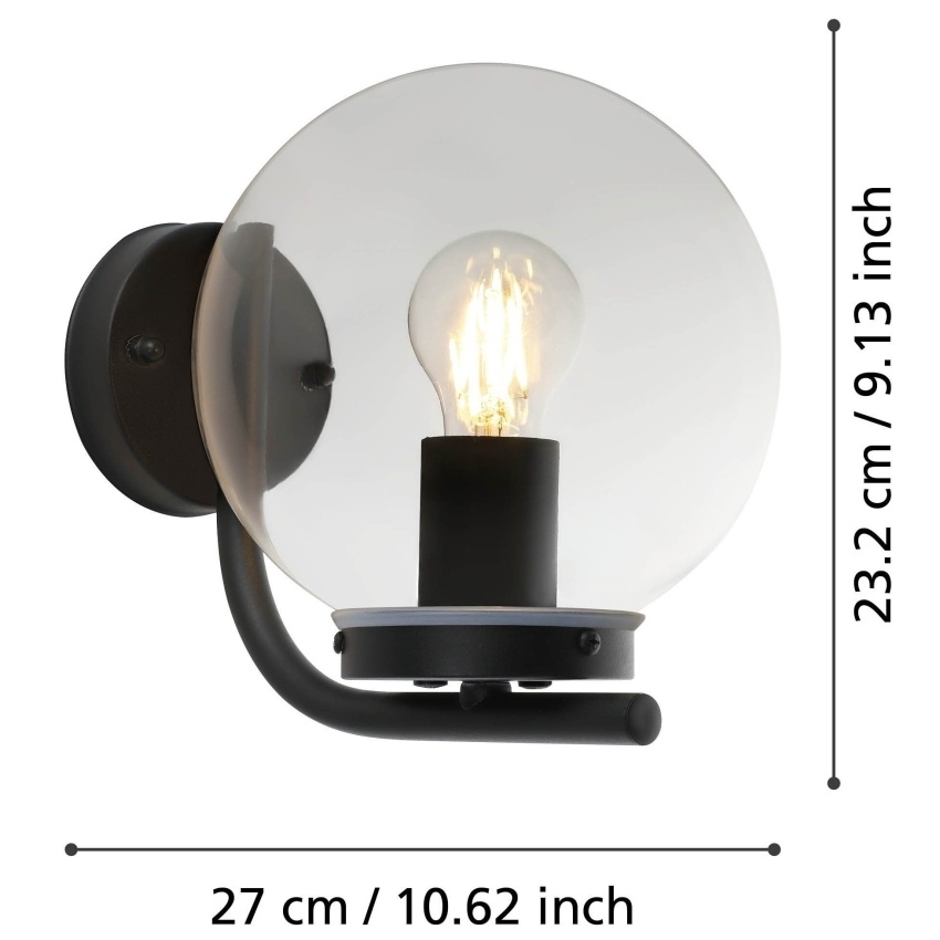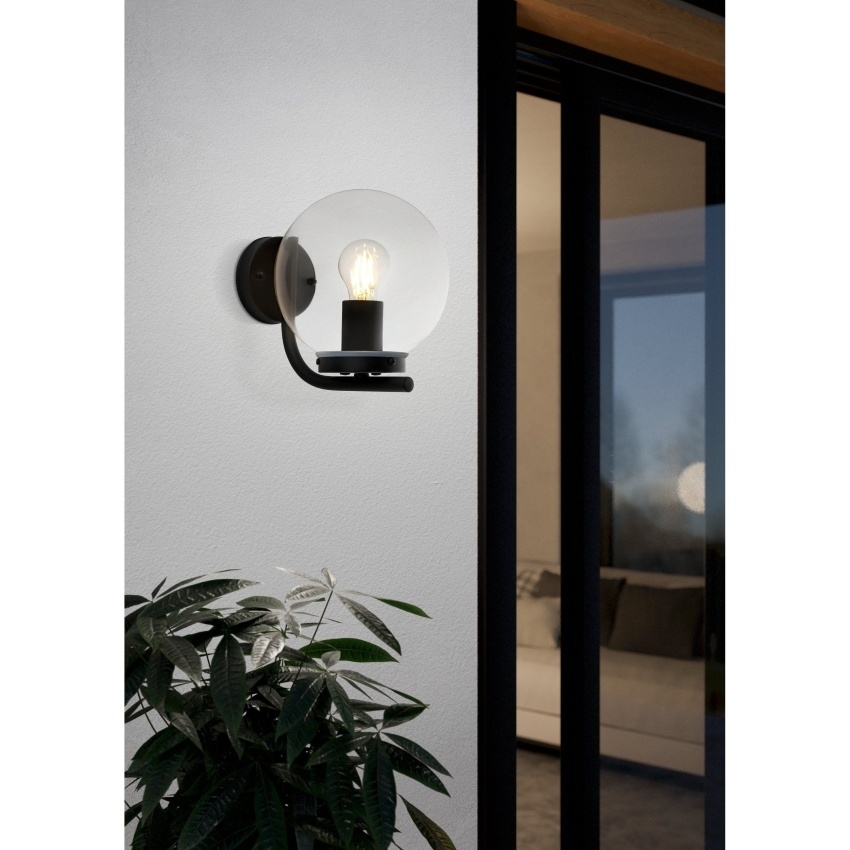 Venkovní nástěnné svítidlo TAVERNA má černé pozinkované kovové tělo s čirou plastovou kopulí. Tuto kopuli lze namontovat nastojato nebo v závěsné poloze. Design má viditelný styl žárovky. Výrobek je vhodný pro venkovní použití díky krytí IP44 proti stříkající vodě a moderní styl krásně doplní váš venkovní prostor. Vyobrazená žárovka s vláknem není součástí balení. Výrobek má objímku žárovky E27 a vyžaduje žárovku E27.