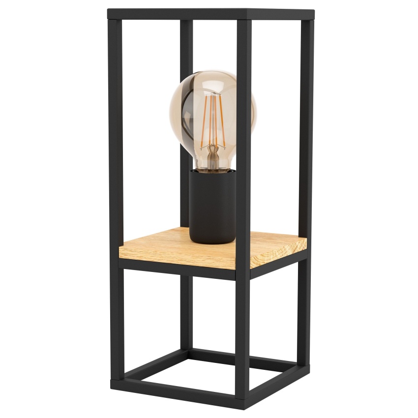 Stolní lampa LIBERTAD má obdélníkový černý kovový rám spárovaný s dekorativním panelem z kaučukovníku. Odkrytý držák lampy uvnitř zdůrazňuje minimalistický vzhled. Světlo se zapíná a vypíná pomocí in-line spínače. Stolní lampa se prolíná s širokou škálou trendů interiérového designu a poskytuje moderní osvětlení v ložnici, obývacím pokoji, jídelně nebo chodbě. Vyobrazená žárovka s vláknem není součástí balení. Výrobek má objímku žárovky E27 a vyžaduje žárovku E27.