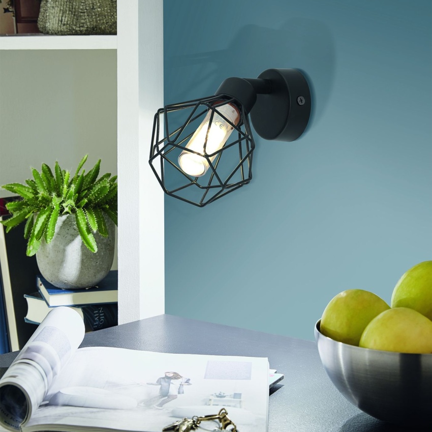 Nástěnné LED svítidlo ZAPATA 1 je vyrobeno z černého kovu a má kulatý držák a nastavitelné drátěné stínidlo ve tvaru diamantu. Když je světlo zapnuté, vytváří prostřednictvím geometrického stínidla fascinující hru světla a stínu. Moderní nástěnné bodové svítidlo poskytuje stylové řešení osvětlení jakéhokoli prostoru, ať už v kuchyni, obývacím pokoji, ložnici nebo předsíni. Součástí výrobku je žárovka G9, která produkuje příjemné teplé bílé světlo.