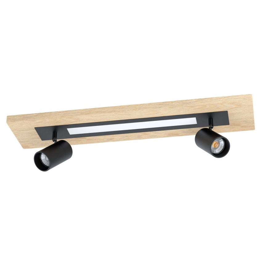 Stropní LED svítidlo TORRESTRALLE je vyrobeno z černého texturovaného kovu obklopeného dřevěným rámem z dubové dýhy. Uprostřed světla je světelný panel s integrovanými LED diodami, které produkují příjemné teplé bílé světlo a zajišťují rovnoměrné osvětlení s bílým plastovým difuzorem. Stropní svítidlo je také vybaveno dvěma otočnými černými kovovými reflektory. Součástí produktu jsou požadované žárovky GU10, které navíc produkují příjemné teplé bílé světlo. Stropní svítidlo má jednoduchý design, který se hodí do každého interiéru a dobře se hodí v každém prostoru, ať už jde o obývací pokoj, ložnici, chodbu nebo jídelnu.