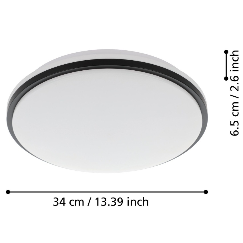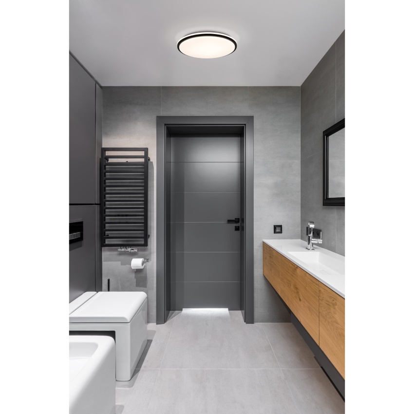 Stropní LED svítidlo PINETTO má kulatý bílý plastový kryt spárovaný s černým plastovým rámem. Výrobek je vhodný pro použití v koupelně díky krytí IP44 proti stříkající vodě a integrované LED diody vytvářejí jasné neutrální bílé světlo. Stropní svítidlo se svým klasickým designem a průměrem 34 cm zapadne téměř do každého interiéru a dobře poslouží v každém obytném prostoru, kde je vyžadováno dobré osvětlení, jako je koupelna, kuchyň nebo chodba.