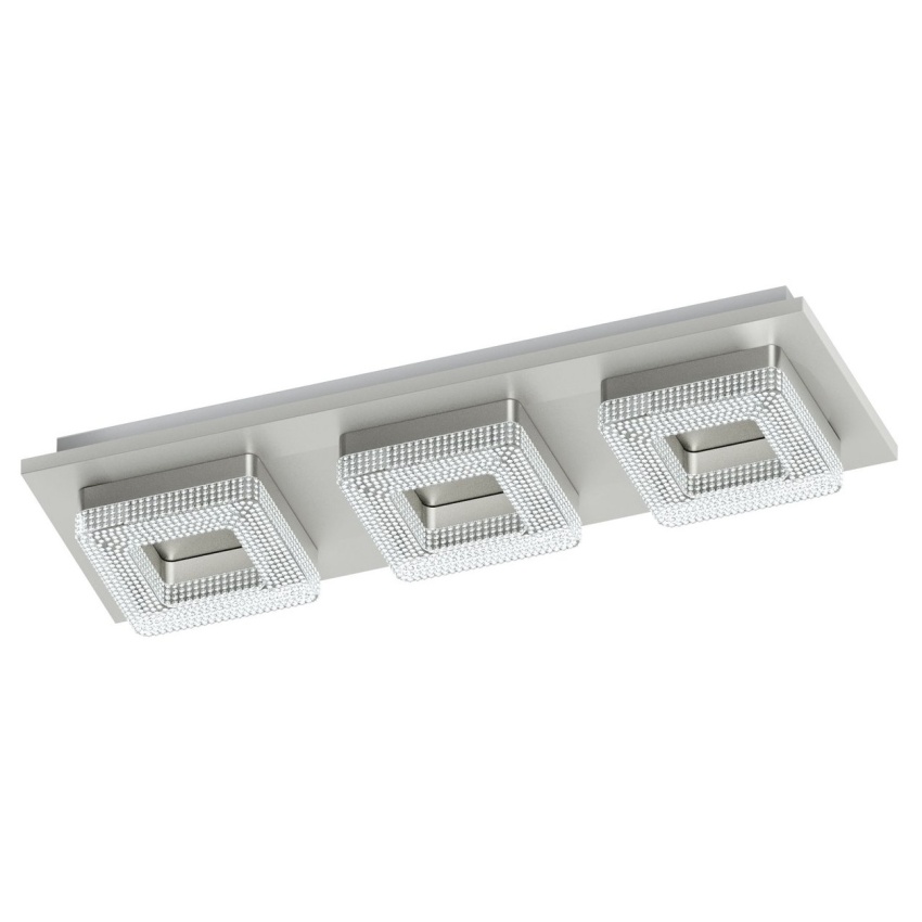 Stropní LED svítidlo FRADELO se vyznačuje obdélníkovým kovovým tělem v chromové barvě a třemi průhlednými plastovými světelnými prvky s čirými granulovanými krystaly uvnitř. Tyto krystaly vytvářejí jiskřivý, špičkový vzhled, zatímco integrované LED diody vytvářejí příjemné teplé bílé světlo. Díky svému klasickému designu se produkt bez problémů hodí do moderních interiérů a dobře se hodí v každém obytném prostoru, ať už v kuchyni, obývacím pokoji, ložnici, chodbě nebo jídelně.