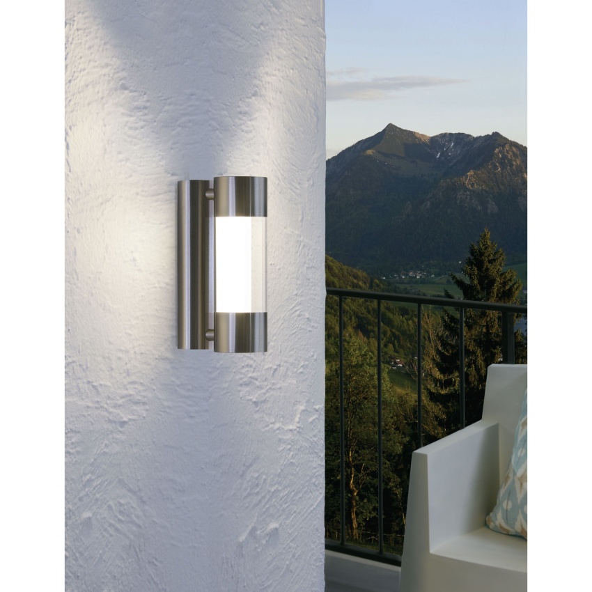 Exteriérové nástěnné LED svítidlo ROBLEDO má válcové tělo z nerezové oceli s čirým plastovým světelným panelem uprostřed. Integrované LED diody v horní a spodní části světelného panelu vrhají do těla příjemné teplé bílé světlo. Nástěnné svítidlo je vhodné pro venkovní použití díky krytí IP44 proti stříkající vodě. Moderní design venkovního svítidla krásně zapadne do vašeho venkovního prostoru a poskytne stylové nepřímé osvětlení vnějších stěn domu, a to i u vchodu do domu nebo na terasu či balkon.