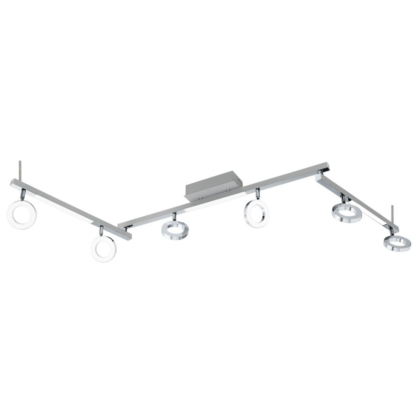 Stropní LED svítidlo CARDILLIO 1 je vyrobeno z chromovaného kovu a hliníku a má tři ramena se šesti kruhovými reflektory. Dvě vnější ramena jsou nastavitelná a mohou být uspořádána a upevněna ke stropu v různých polohách. Stropní svítidlo má také tři světelné panely v ramenech. Integrované LED pod saténovými plastovými kryty vytvářejí příjemné teplé bílé světlo. Klasické stropní bodové svítidlo hladce splyne s trendy moderními styly a nastavitelná světla vám umožní vytvořit soustředěné osvětlení, ať už v kuchyni, obývacím pokoji, ložnici, chodbě nebo jídelně.