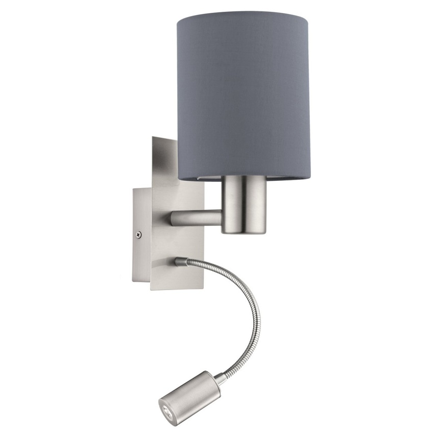 Nástěnné svítidlo PASTERI má tělo z matného niklu s kulatým látkovým stínidlem v šedé barvě. Nástěnné svítidlo má nastavitelné světlo na čtení, které vytváří teplé bílé světlo, které poskytuje soustředěné osvětlení. Výrobek má jednoduchý design, který hladce splyne s téměř jakýmkoli trendem interiérového designu. Lze jej snadno zapnout a vypnout pomocí kolébkového spínače na těle. Ať už v ložnici nebo v obývacím pokoji, produkt poskytuje útulné a praktické osvětlení vašeho obytného prostoru. Žárovka není součástí dodávky. Výrobek má objímku žárovky E27 a vyžaduje žárovku E27.