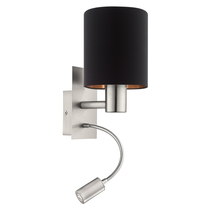 Nástěnné svítidlo PASTERI má tělo z matného niklu s kulatým látkovým stínidlem s černými a měděnými akcenty. Nástěnné svítidlo má nastavitelné světlo na čtení, které vytváří teplé bílé světlo, které poskytuje soustředěné osvětlení. Výrobek má jednoduchý design, který hladce splyne s téměř jakýmkoli trendem interiérového designu. Lze jej snadno zapnout a vypnout pomocí kolébkového spínače na těle. Ať už v ložnici nebo v obývacím pokoji, produkt poskytuje útulné a praktické osvětlení vašeho obytného prostoru. Žárovka není součástí dodávky. Výrobek má objímku žárovky E27 a vyžaduje žárovku E27.