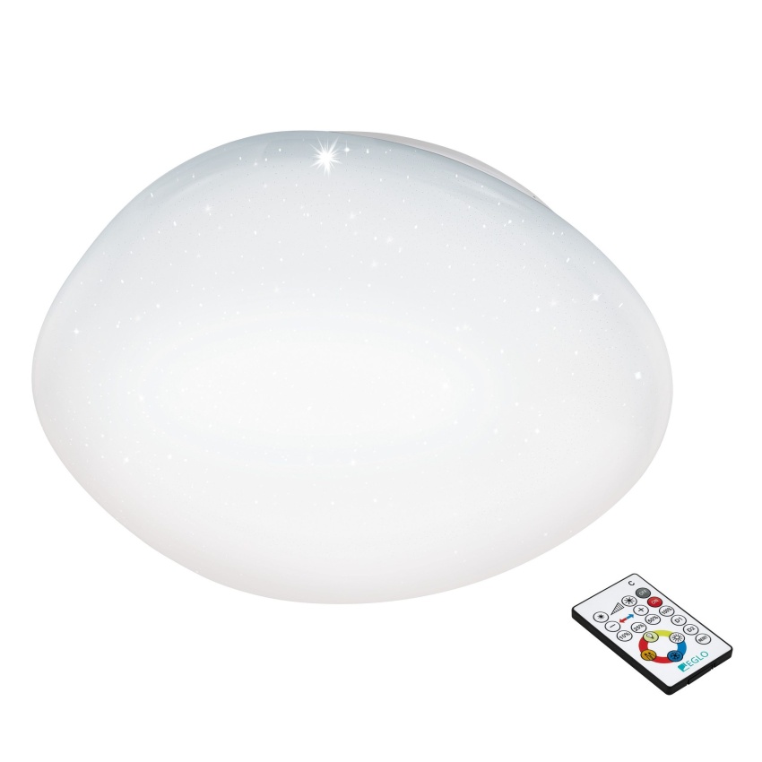 Stropní LED svítidlo SILERAS má zaoblený design v bílé plastové povrchové úpravě. Jakmile je světlo zapnuté, vytváří jiskřivý efekt jako hvězdy na noční obloze. Integrované LED diody vytvářejí příjemné světlo, které lze nastavit podle potřeby. Přiložený dálkový ovladač dokáže upravit jas, nastavit funkci paměti a měnit teplotu barev mezi teplou bílou, neutrální bílou a studenou bílou. Stropní svítidlo se dokonale hodí do moderních interiérů a poskytuje atraktivní osvětlení jakéhokoli prostoru, ať už v kuchyni, obývacím pokoji, ložnici, dětském pokoji nebo předsíni.