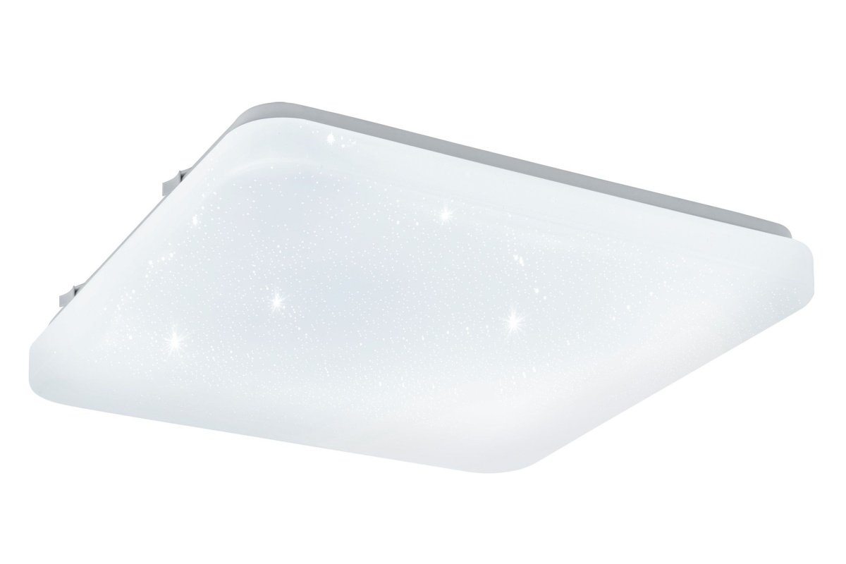 Stropní LED svítidlo FRANIA-S má čtvercový bílý plastový kryt a bílý kovový zadní panel. Když je světlo zapnuté, světlo prosvítá krytem a vytváří jiskřivý efekt jako hvězdy na noční obloze. Integrované LED diody vytvářejí příjemné teplé bílé světlo. Stropní svítidlo má rozměry 28 x 28 cm a hodí se obzvláště dobře do obytných prostor v moderním stylu, včetně obývacích pokojů, ložnic, chodeb a dětských pokojů.