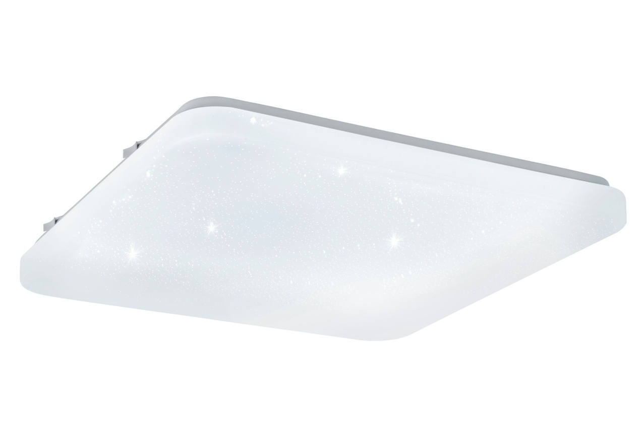 Stropní LED svítidlo FRANIA-S se vyznačuje čtvercovým bílým plastovým světelným panelem se zaoblenými rohy a bílým kovovým zadním panelem. Když je světlo zapnuté, světlo prosvítá krytem a vytváří jiskřivý efekt jako hvězdy na noční obloze. Integrované LED diody vytvářejí příjemné teplé bílé světlo. Stropní svítidlo má rozměry 33 x 33 cm a poskytuje atraktivní osvětlení a zároveň se dokonale hodí do obytných prostor v moderním stylu, včetně kuchyní, obývacích pokojů, ložnic, chodeb a dětských pokojíků.