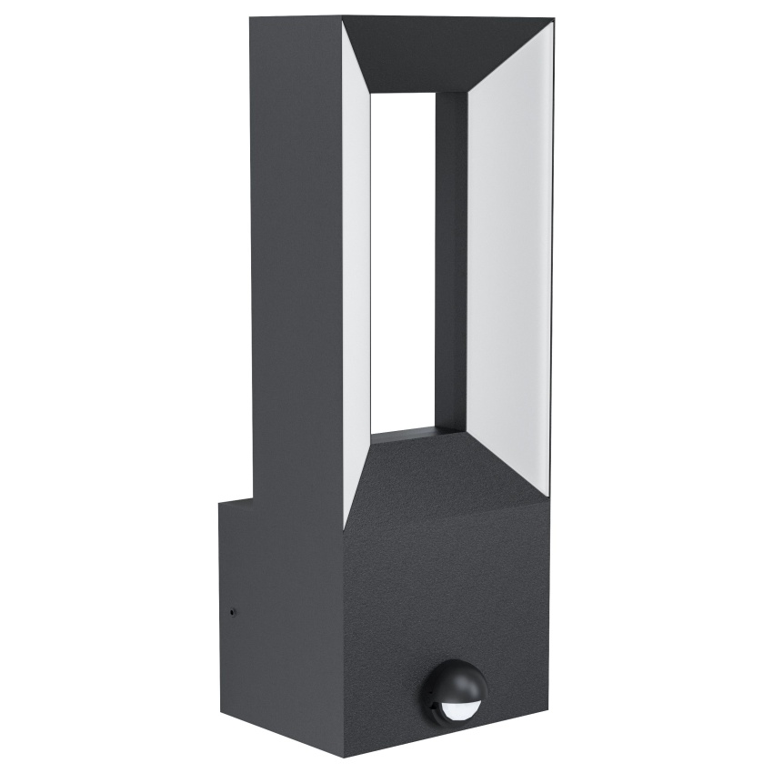 Vnější nástěnné svítidlo RIFORANO LED má tělo z černého lineárního litého hliníku. Integrované LED diody za diagonálními bílými plastovými světelnými panely vytvářejí příjemné teplé bílé světlo. Další světelné prvky na zadní straně světel vytvářejí fascinující dekorativní světelné efekty. Nástěnné svítidlo má integrovaný pohybový senzor a automaticky se rozsvítí, aby osvětlilo místa se špatnou viditelností a odradilo nechtěné návštěvníky. Integrovaný soumrakový senzor měří úroveň okolního světla, aby se zajistilo, že se světlo zapne pouze v případě potřeby. Nástěnné svítidlo je vhodné i pro venkovní použití díky krytí IP44 proti stříkající vodě. Díky svému jednoduchému designu se produkt hodí do každého moderního venkovního prostoru a je dokonalým senzorovým světlem pro domovní vchody, terasy nebo balkony.