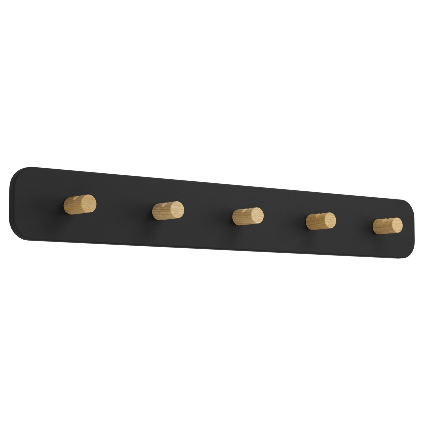 Nástěnné LED svítidlo CIVITATE má obdélníkové černé kovové tělo se zaoblenými rohy. S pěti háčky vyrobenými z hnědého kaučukovníku nabízí nástěnné svítidlo dostatek prostoru pro bundy a kabáty a skvěle funguje jako osvětlený věšák. Integrované LED diody produkují příjemné teplé bílé světlo a vytvářejí nepřímé osvětlení vstupního prostoru. Toto minimalistické nástěnné svítidlo doplňuje moderní interiéry a lze jej snadno zapínat a vypínat pomocí in-line vypínače.