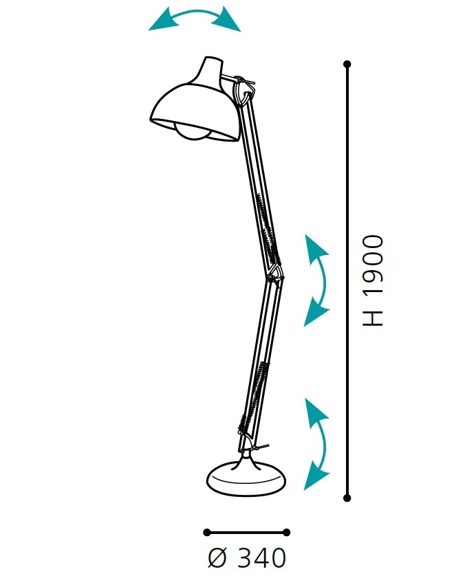 Stojací lampa BORGILLIO je vyrobena z černého kovu s černou, nastavitelnou hlavou a vnitřním bílým obložením. Praktické klouby na těle umožňují nastavení výšky, takže můžete během okamžiku osvětlit určitou oblast místnosti. Svítidlo lze snadno zapínat a vypínat pomocí podlahového vypínače v řadě. Stojací lampa dokonale zapadne do moderních interiérů. Výrobek vyžaduje 1 žárovku E27, která není součástí balení.