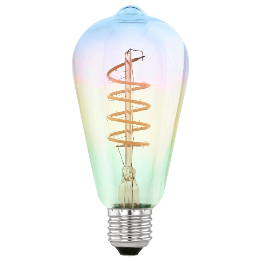 Dekorativní LED žárovka E27 (ST64) má duhový skleněný povrch se spirálovitými LED diodami. Speciální povrchová úprava vytváří třpytivý holografický efekt s řadou duhových barev. 4W LED žárovka vytváří příjemné teplé bílé světlo. Díky svému jedinečnému vzhledu funguje LED žárovka také perfektně jako samostatná dekorativní žárovka, která vytváří poutavý prvek v každém obytném prostoru.