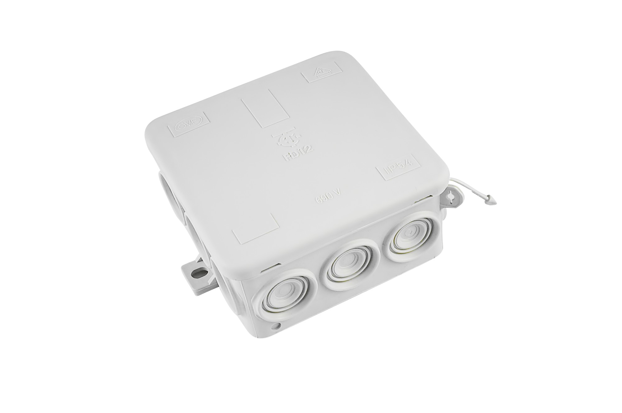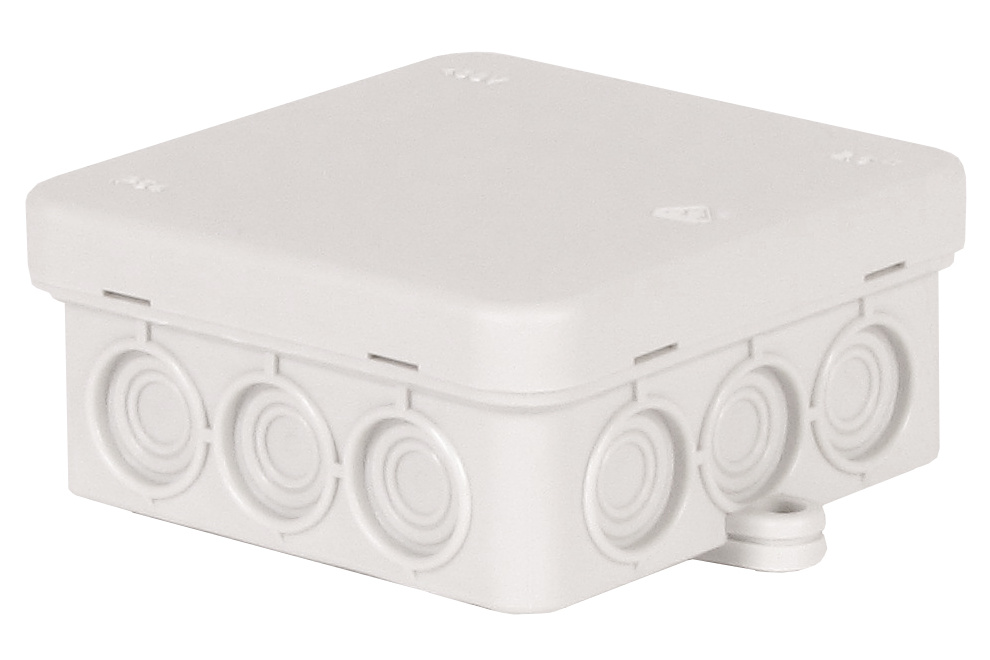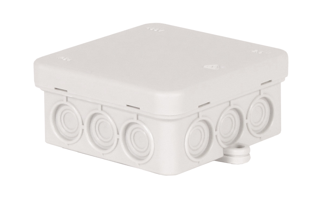 Krabice rozbočovací FD 12 L, plastová, s naklapávacím víčkem, 12x vstup 2,5mm2, na omítku, IP55, 85x85x40mm.