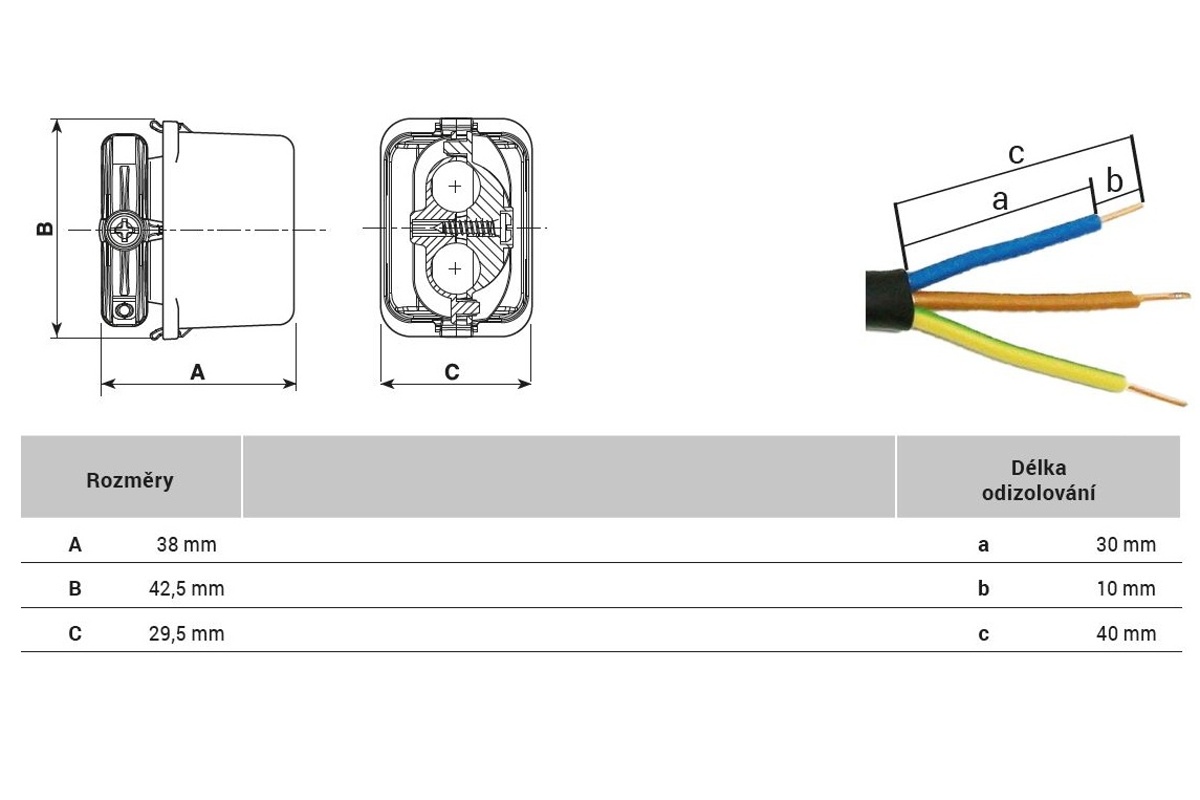 | Jmenovitý průřez vodiče hlavního kabelu | 0.75 - 1.5 m |