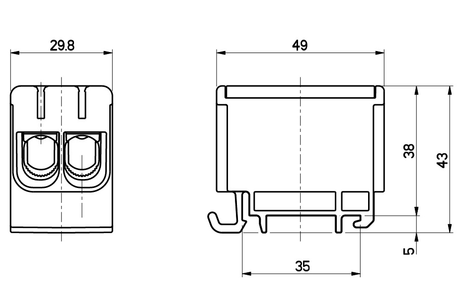 Svorka univerzální UK 50/2 A, 160A, 1pól., AL/CU, krytá, šedá, na DIN