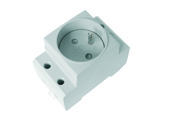 Zásuvka VES-F 230V/16A s ochr. kolíkem, na DIN lištu, šedá /6334791