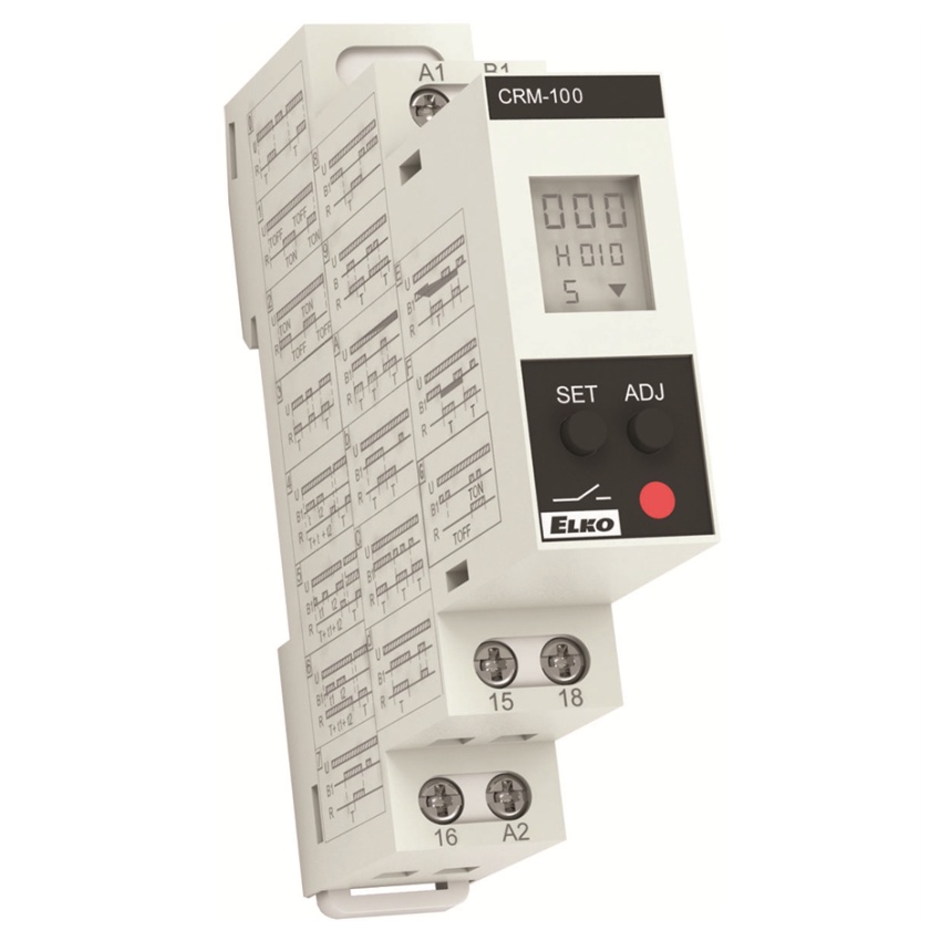 Digitální multifunkční relé pro využítí v řízení osvětlení, vytápění, ovládání motorů, čerpadel a pro časové funkce. POPIS Digitální multifunkční relé pro využítí v řízení osvětlení, vytápění, ovládání motorů, čerpadel a pro časové funkce. Digitální relé disponuje 17 funkcemi: 4 časové funkce ovládané napájecím napětím 13 časových funkcí ovladaných ovládacím kontaktem Přesné nastavení a zobrazení času na displeji (odpadá tolerance mechanicky nastavovaných prvků). Časový rozsah 0.1 s - 999 hodin. Přehledné zobrazení časové funkce na displeji. TECHNICKÉ PARAMETRY Univerzální napájecí napětí 24 – 240 AC/DC. Výstupní kontakt: 1x přepínací 8 A. Pracovní teplota - 10 °C .. 55 °C. Krytí IP30 - čelní panel, IP20 na svorkách. Rozměr 85 x 18.2 x 76 mm. V provedení 1-MODUL, upevnění na DIN lištu.