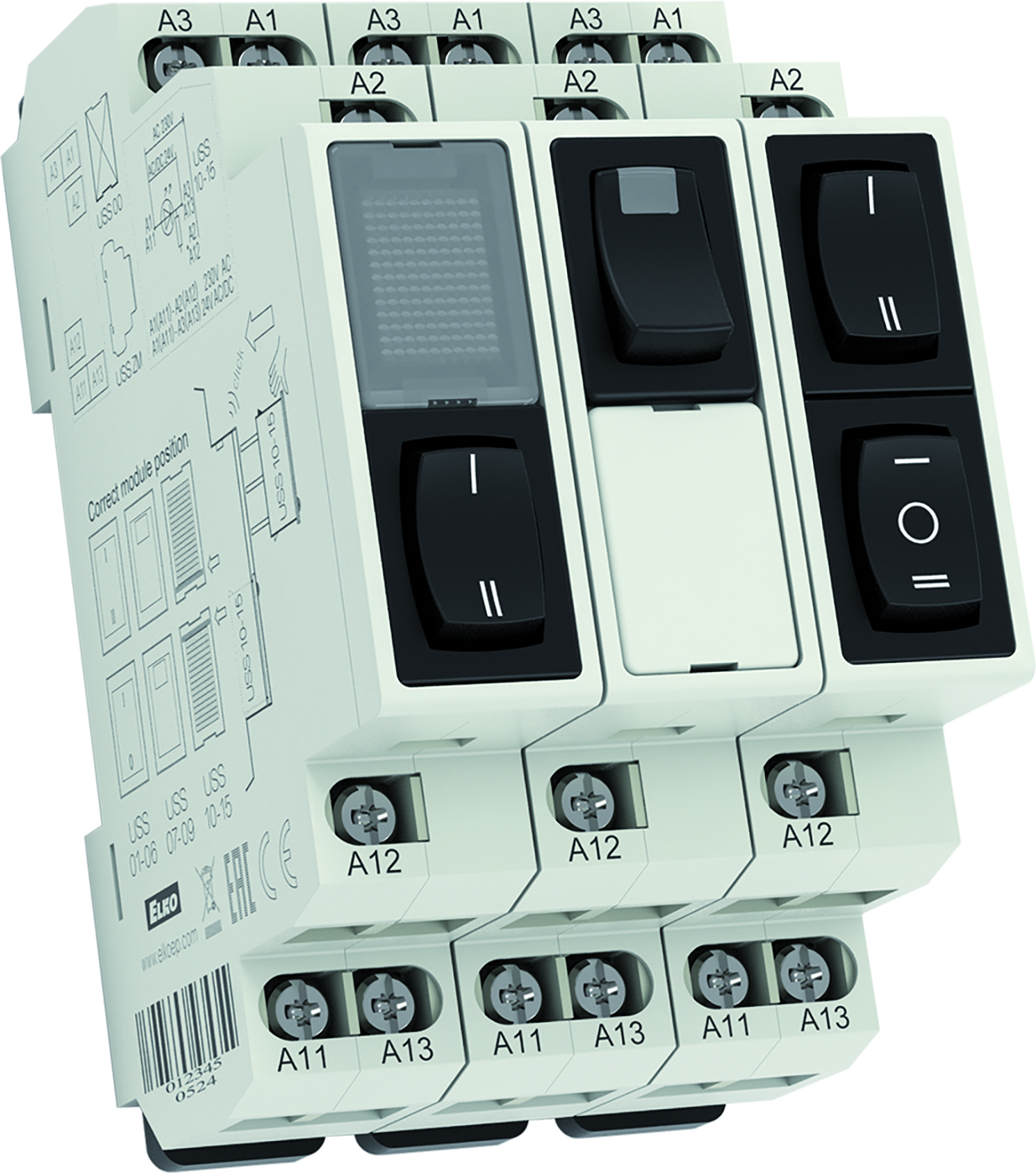 napájecí napětí signálek AC 230 V (A1-A2) nebo AC/DC 24 V (A1-A3)