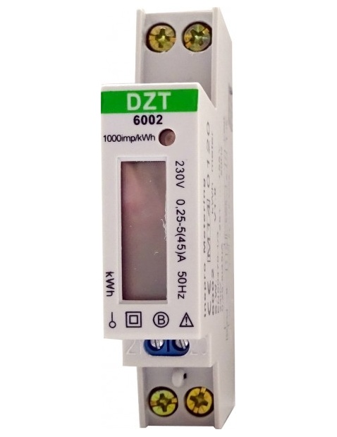 Jednofázový elektroměr na lištu DIN, LCD, úředně ověřený vč. českého protokolu o ověření stanoveného měřidla, přímé měření do 45A, LCD displej, fakturační měřidlo