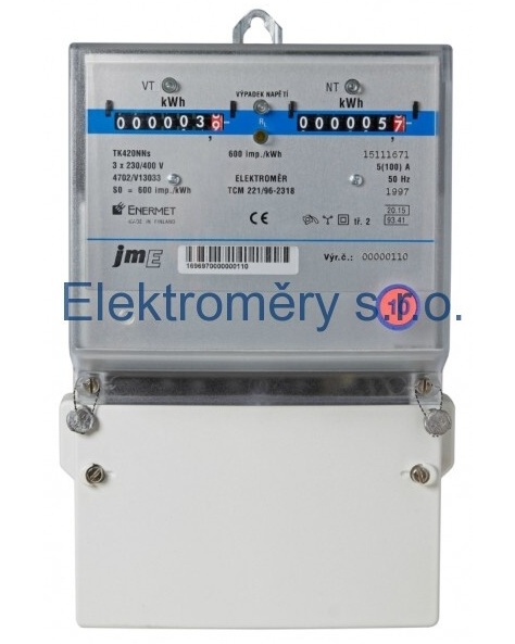 Třífázový elektroměr na kříž, úředně ověřený, elektronické provedení, dvousazbový vč. protokolu o ověření stanoveného měřidla