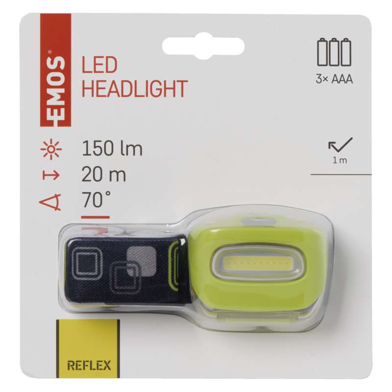 EMOS COB LED čelovka P3528, 150 lm, 20 m, 3× AAA