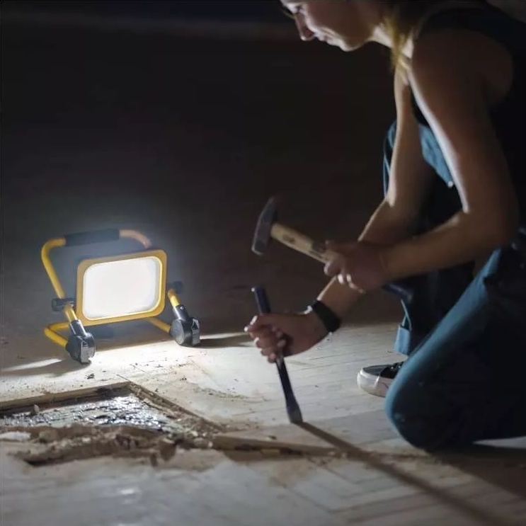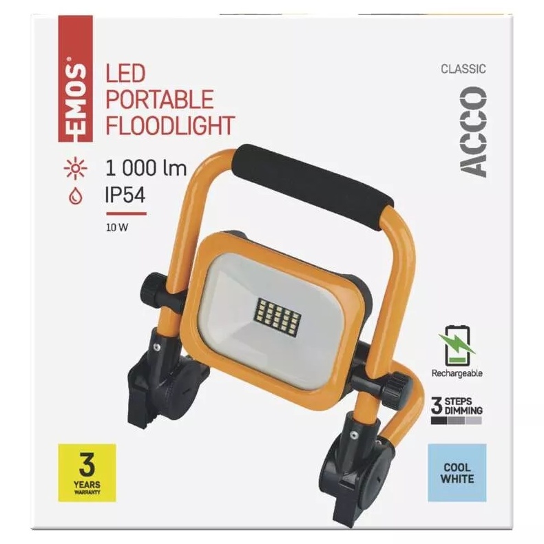 LED reflektor ACCO nabíjecí, přenosný, 10 W, žlutý, studená bílá