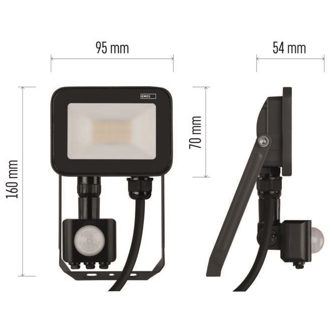 EMOS LED reflektor INOVO s pohybovým čidlem, 10W, antracit, neutrální bílá