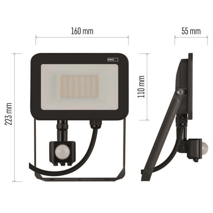 EMOS LED reflektor INOVO s pohybovým čidlem, 30W, antracit, neutrální bílá