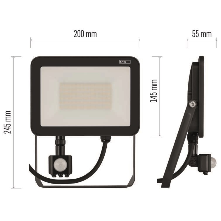 EMOS LED reflektor INOVO s pohybovým čidlem, 50W, antracit, neutrální bílá