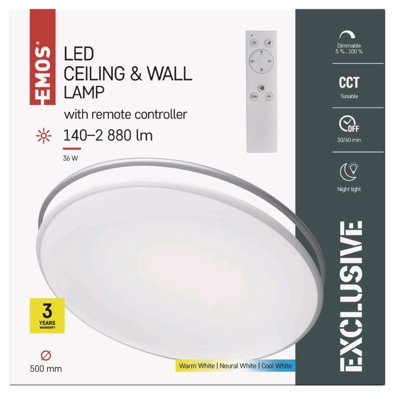 EMOS LED přisazené svítidlo ALVI, kruhové 36W, stmív. se změnou CCT