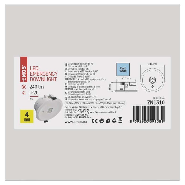 EMOS Nouzové svítidlo ORSU 3W 240lm 3h MT
