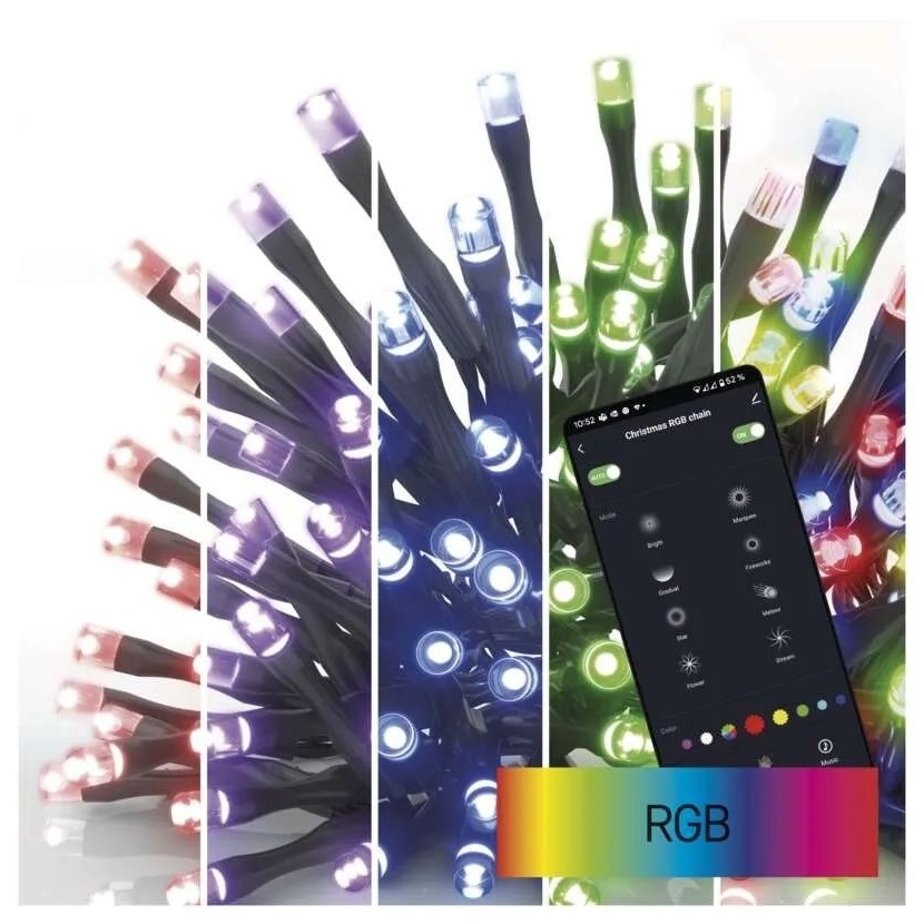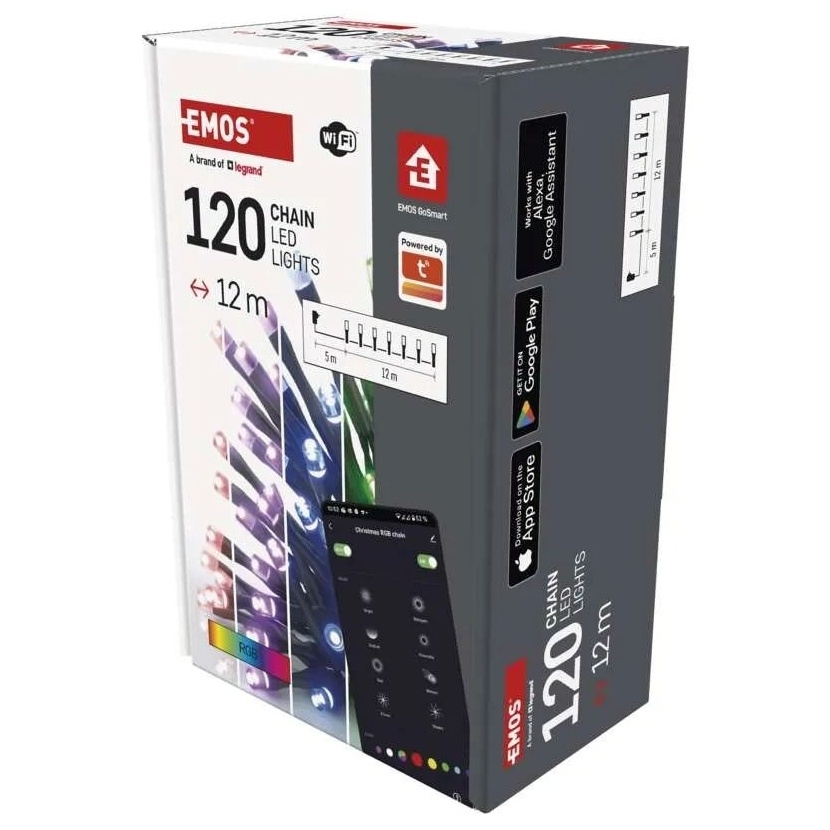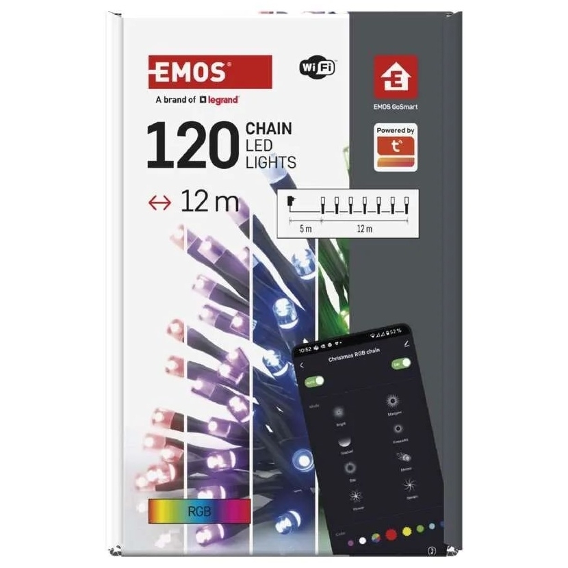 EMOS GoSmart LED vánoční řetěz, 12 m, venkovní i vnitřní, RGB, programy, časovač, wifi
